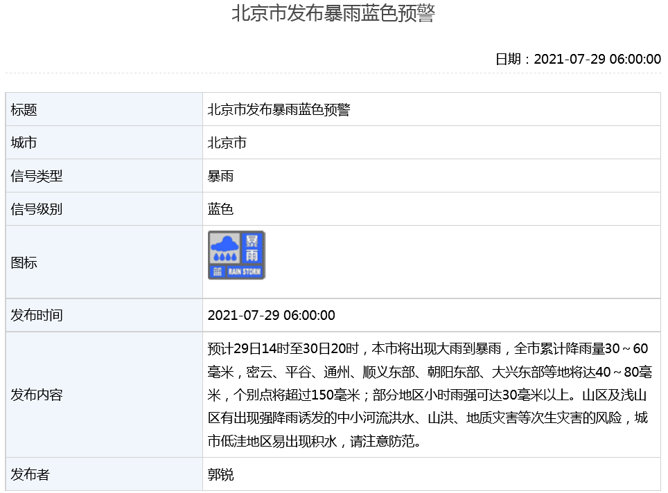來源:北京市氣象局此后,北京市平谷區、通州區、朝陽區相繼發布...